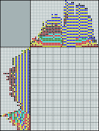 Раскраска в том смысле, что почти нигде подсчитывать не надо, просто тупо заполнять. Слишком много мелочи; из-за этого слишком большая сетка. Рисунок красивый, но из-за скуки решения я дал на балл ниже. Я тоже ожидаю большего/лучшего от belko.