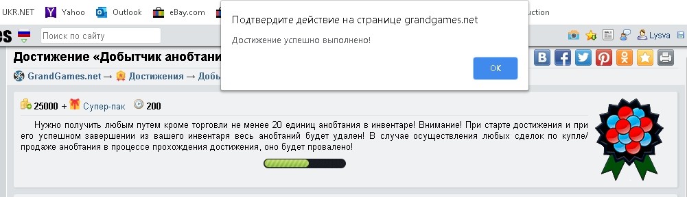 Достижение с одной стороны простое - но вот времени и ресурсов требует очень много. Но удовольствие от прохождения получено огромное. Ну и плюс "Супер-Пак" (25 000 по сравнению с затратами - как карманные деньги). Но основной приз конечно впечатляет. Как пройти это достижение? Да очень просто. Несмотря на то, что анобтаний можно получить только 2-мя способами - рецепты "Анобтаний" (при помощи пакетов монет) и "Артефакты. Анобтаний" (естественно основная составляющая - артефакты). Запаситесь 20 рецептами (неважно в каких пропорциях, пусть их будет в сумме 20 штук) и смело начинайте собирать анобтании. Самое главное - ни в коем случае не покупайте и не продавайте анобтании после активации достижения. Я сам поначалу чуть было не купил, вовремя остановился. Достижение будет провалено. За несколько дней до появления этого достижения - сделал 3 анобтания для технических нужд, подсказки сделать, на стикеры отложить. И тут появляется "Добытчик" - и всё, пришлось экстренно переводить лишние анобтании (которые пропадают при активации достижения) в более ликвидные активы (подсказки и нереальный дроп). А после этого всё пошло очень ровно - первый я получил за окончание "Повелителя головоломок", еще 2 получил в волшебных билетах - а остальные собирал уже при помощи рецептов. Рецепты на пакеты монет выгодные, ассортимент ингредиентов разнообразный - так что хоть и затратно, но очень интересно. А под финиш удержаться было совсем сложно, в ход пошли все резервы. Но вот, родной