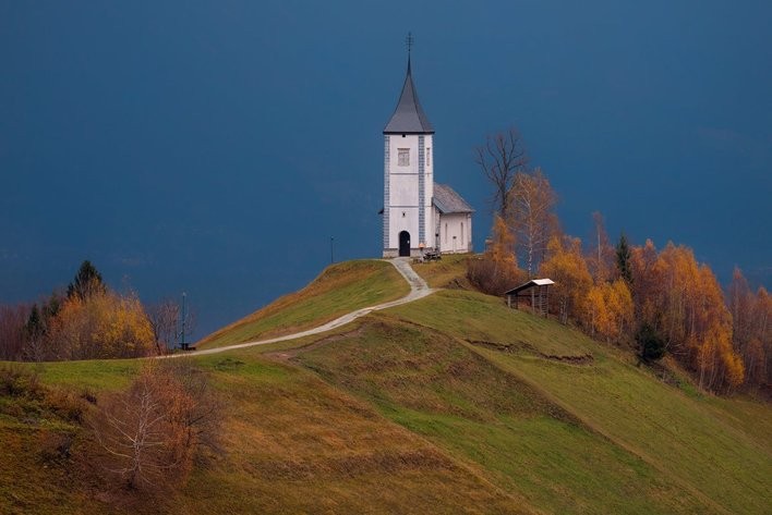 Церковь св. Приможа и Фелициана в Ямнике (cerkev Svetega Primoža in Felicijana) На склонах высокогорного плато Еловица лежит деревня Ямник (Jamnik). Деревня известна прежде всего своей церковью св. Приможа и Фелициана. Первые упоминания о церкви и деревне относятся к 1501 году. От Ямника к церкви идет вверх прямо по горному хребту узкая дорога. С этого места в ясную погоду открывается фантастический вид на Западный хребет Караванке, Камнишко-Савинские Альпы и окружающие деревню холмы. Координаты: SI 46,1 14,5