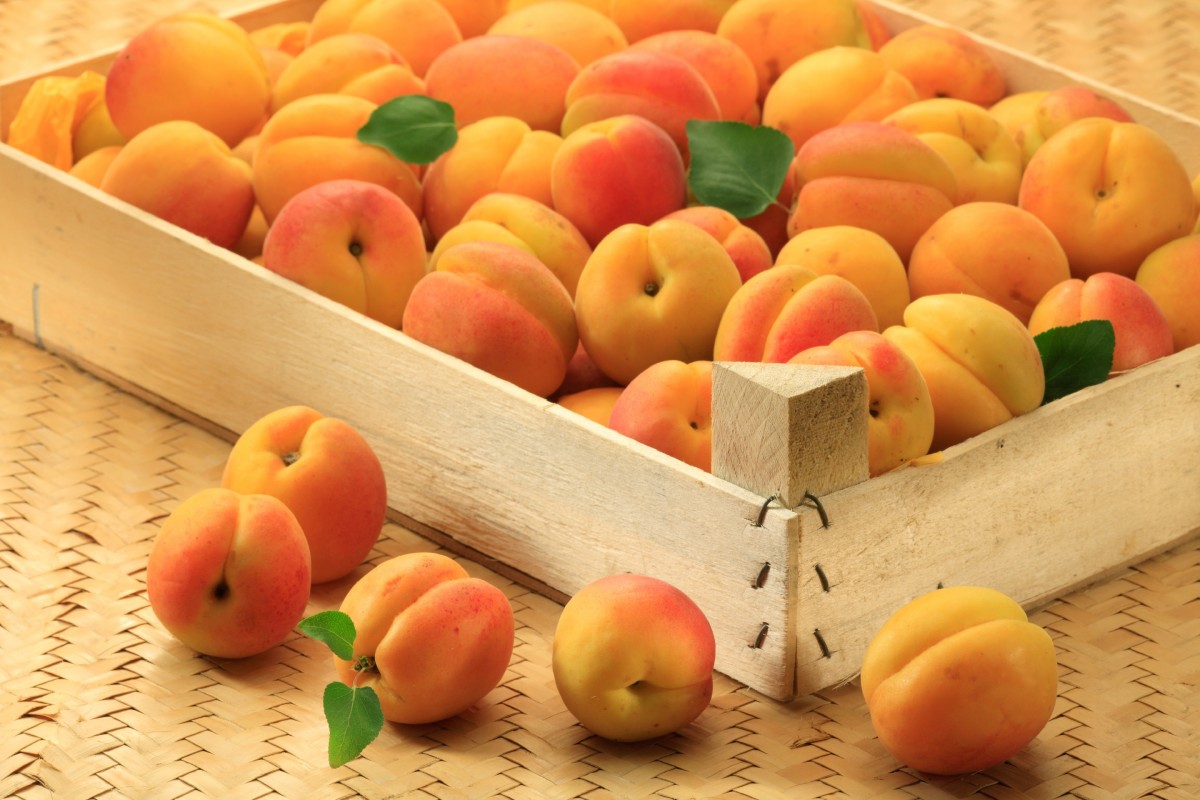 Абрикосы в ящике.