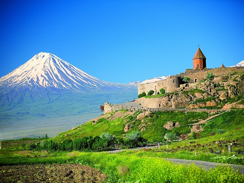 Гора Арарат на фоне древнего армянского монастыря Хор Вирап.