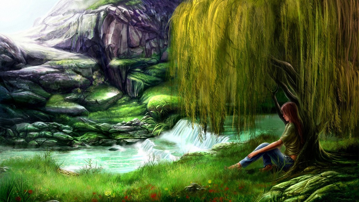 Онлайн пазл «Девушка под ивой»
