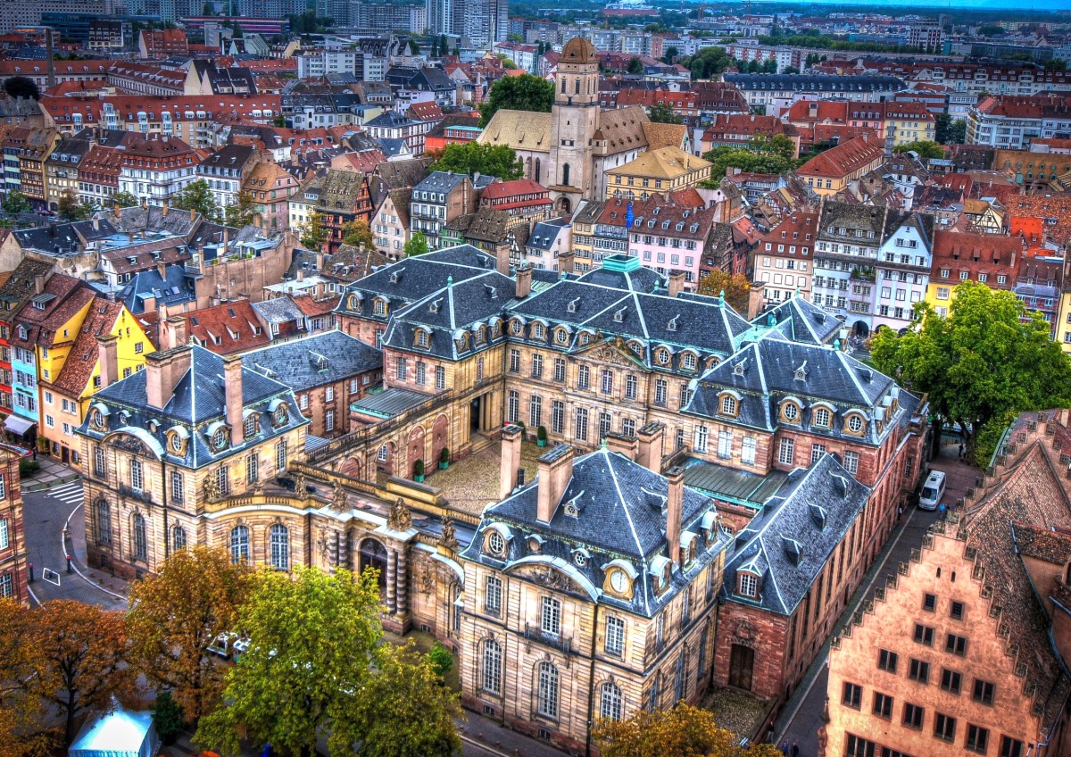 Дворец Рохан Страсбург Франция город улица дома дворец сверху