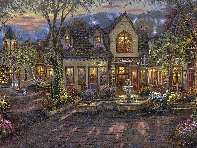 Художник Robert Finale. Фонтан перед рестораном.