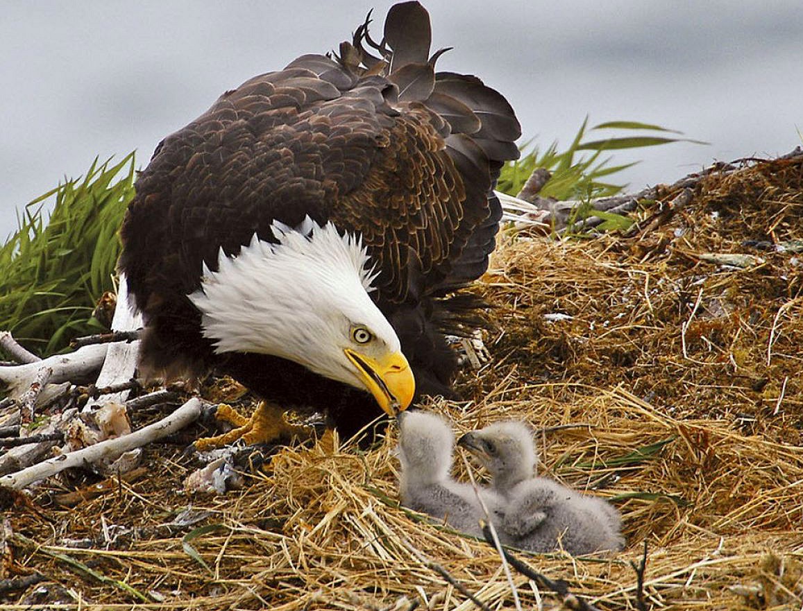 Орёл кормит птенцов.