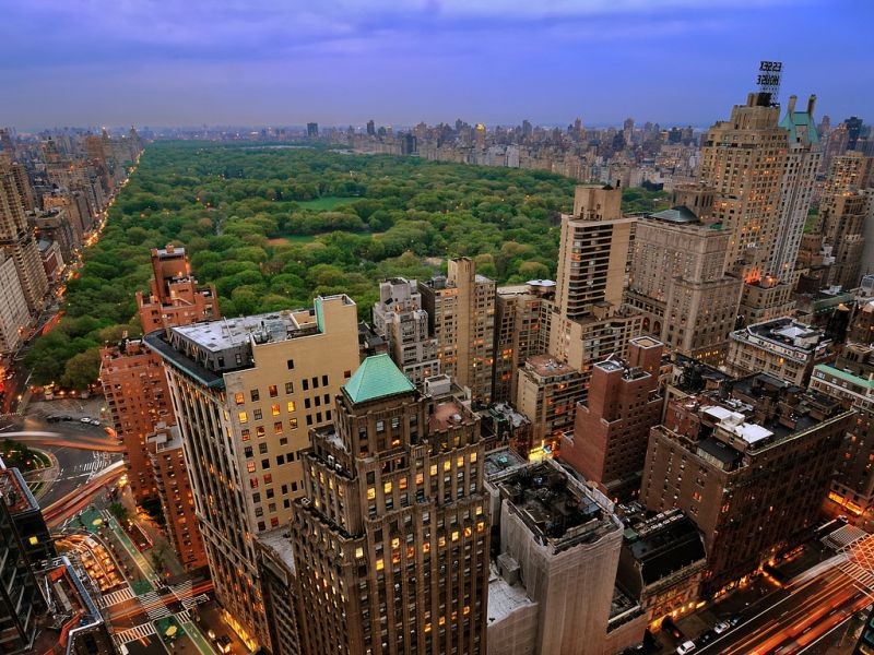 Центральный парк -в Нью-Йорке является одним из крупнейших в США и известнейших в мире. Парк расположен на острове Манхэттен между 59-й и 110-й улицей и Пятой и Восьмой авеню и имеет прямоугольную форму. Длина парка — около 4 километров, ширина — около 800 метров. Парк посещают примерно 25 миллионов человек в год, он является наиболее посещаемым парком в США, и его показ во многих фильмах и телевизионных шоу сделал парк одним из самых знаменитых в мире.Однотонные области: 2%