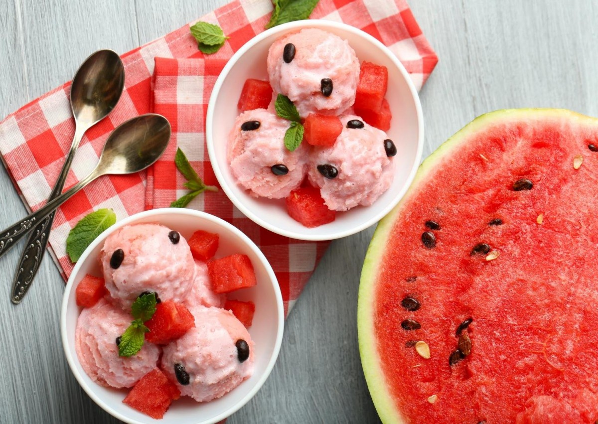 Арбузное мороженое и спелый арбуз.