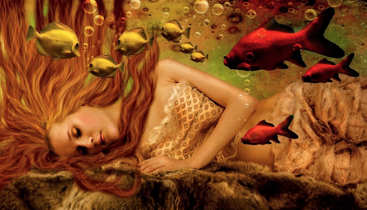Фантастический рисунок: спящая русалка.