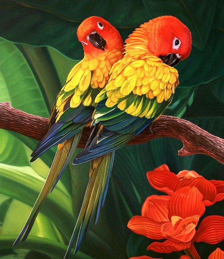 Онлайн пазл «Пара попугаев»