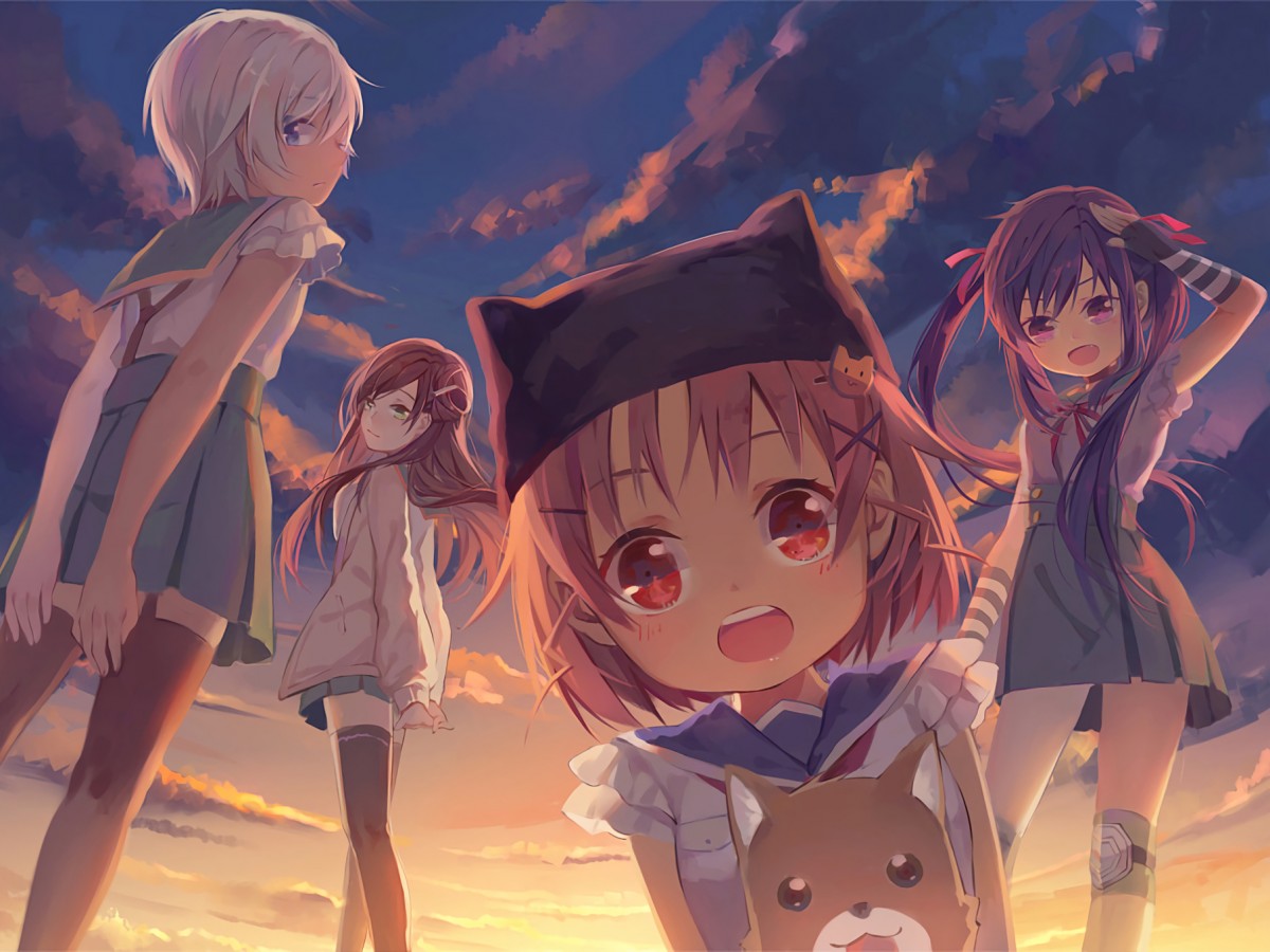Арт по аниме "Школьная жизнь!": Мики Наоки, Юри Вакаса, Юки Такэя, Куруми Эбисузава. Пазлы аниме: http://japonskie.ru/public/anime