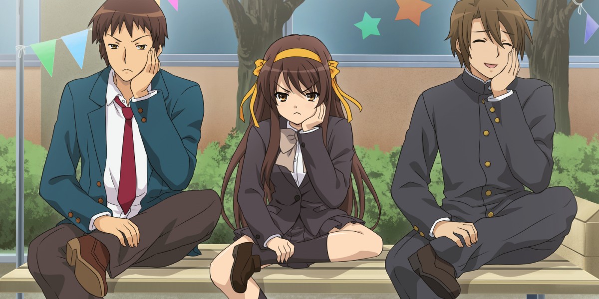 Аниме "Меланхолия Харухи Судзумии" ("Suzumiya Haruhi no Yuuutsu", "The Melancholy of Haruhi Suzumiya"): Кён, Харухи Судзумия, Ицуки Коидзуми.