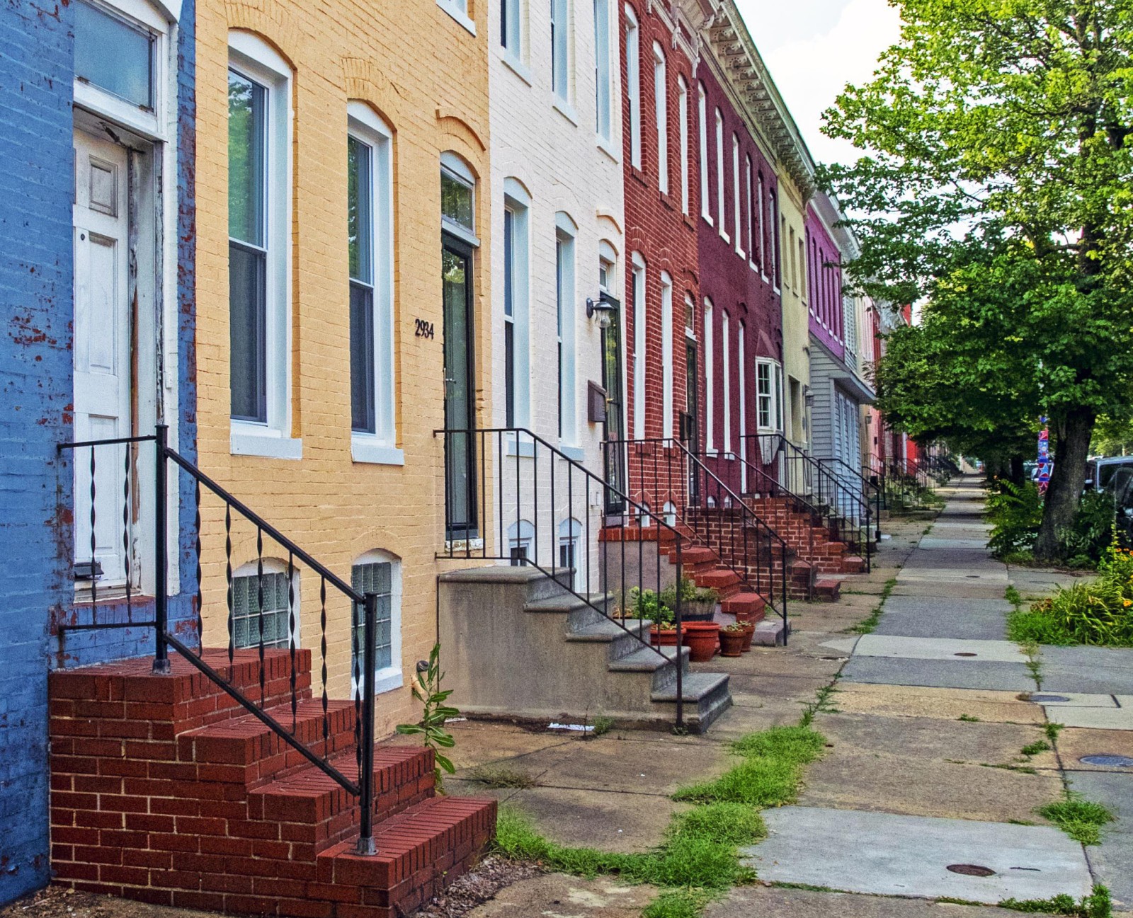 Улица в Балтиморе Мэриленд США город улица дома дверь окна лестница