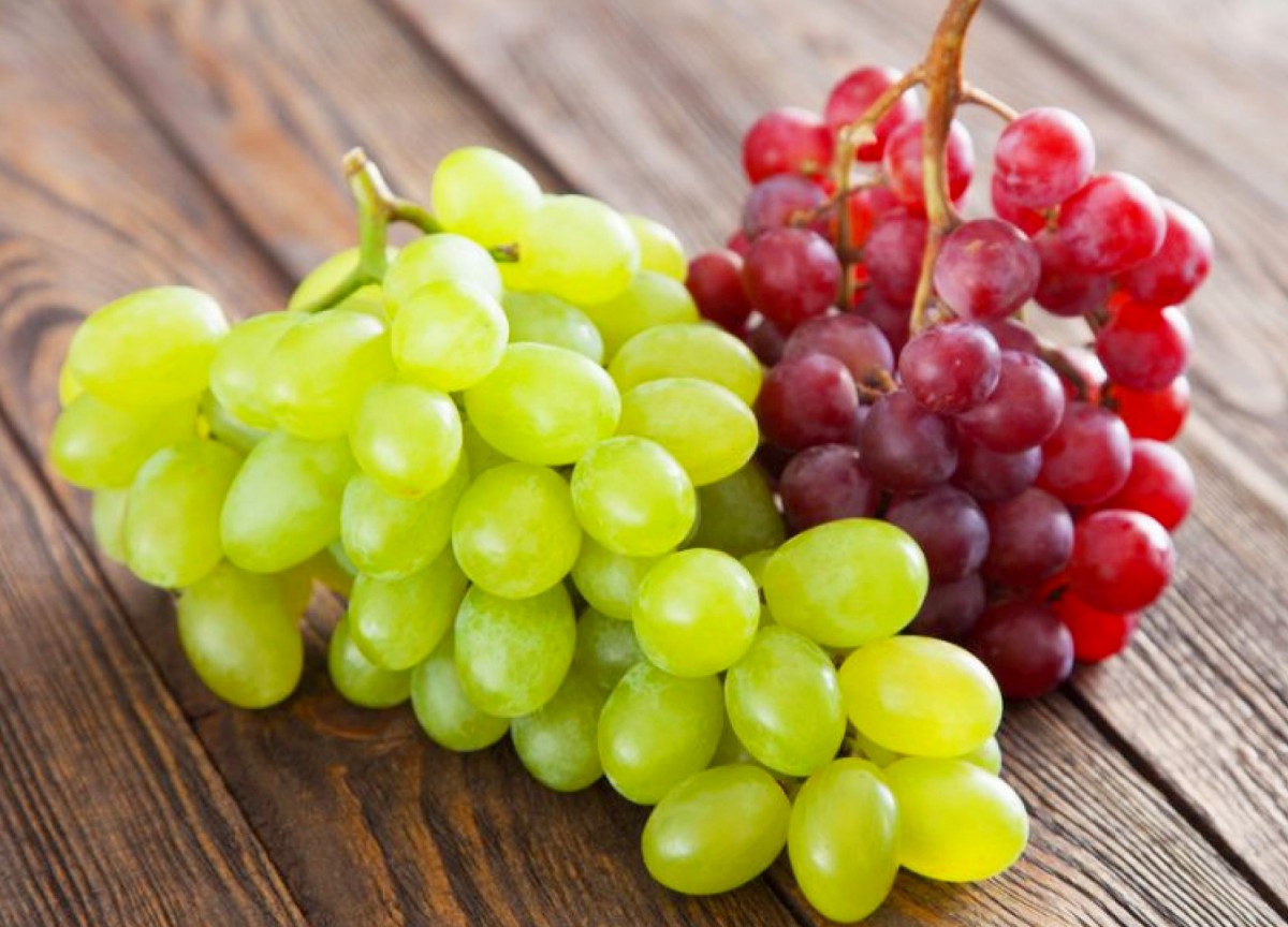 Жёлтый и красный виноград.