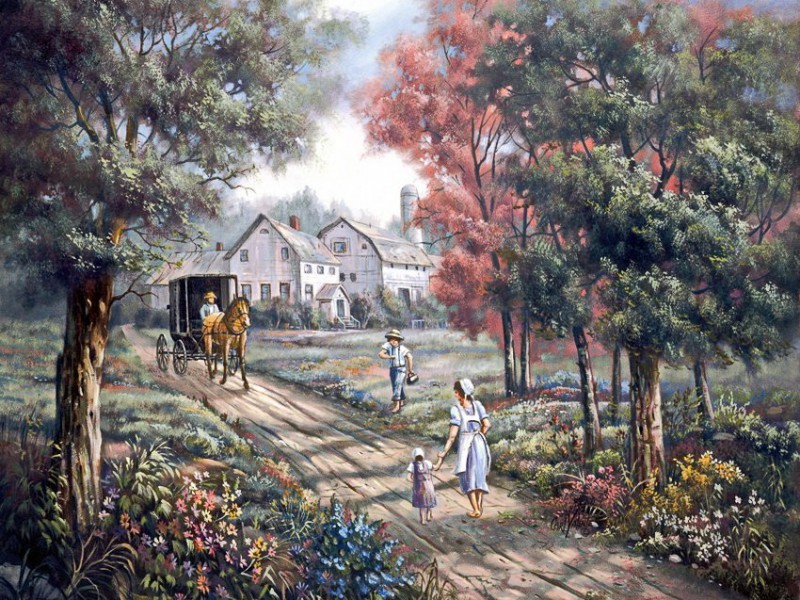 Неспешное течение жизни за городом,милая и приятная для глаз картинка.Спасибо за пазл,Sakara
