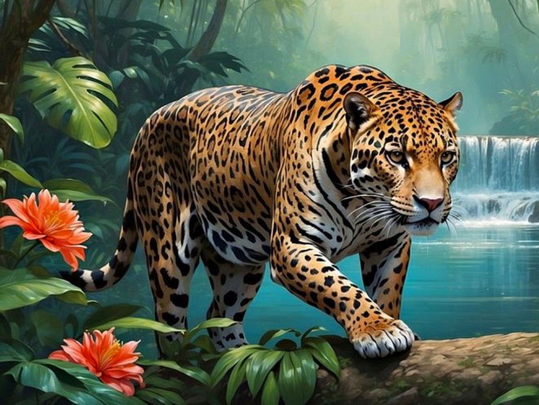Леопард у водопада