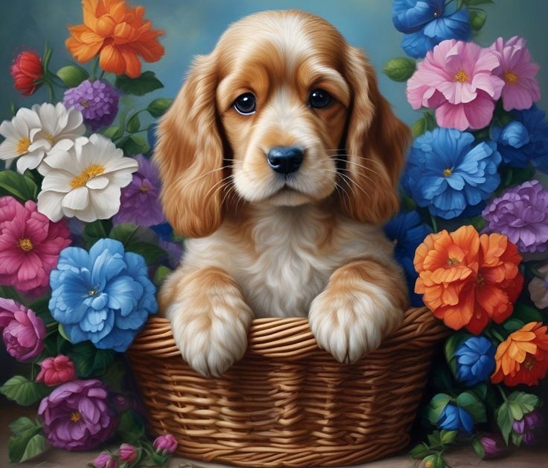 Щенок в корзине